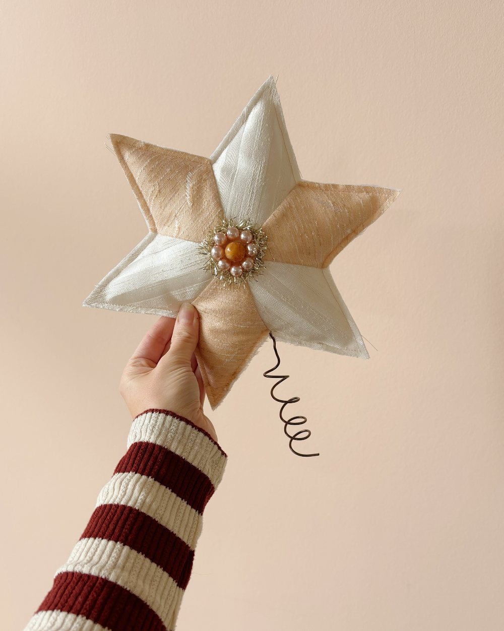 Se guidenSy en fin topstjerne pyntet med lametta og perleblomst. Få guide og skabelon her.